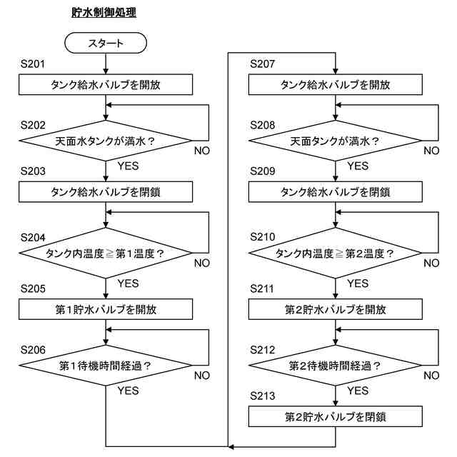 前記制御部は、前記乾燥時に前記第2タンク内が貯水状態となるよう、前記給水部により前記第2タンク内に給水を行う、