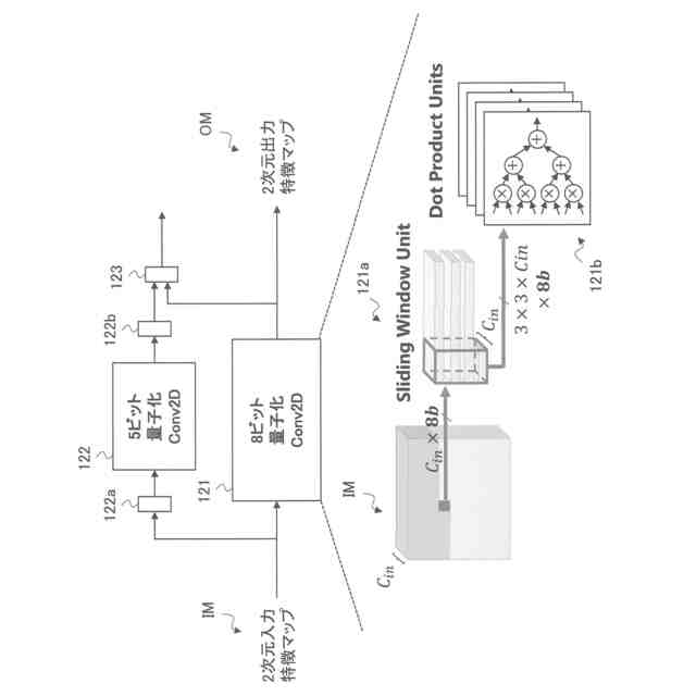 前記特定の層に対応する演算を行う演算回路であって、前記特定の層に対する2次元入力特徴マップを量子化することによってMビットの2次元入力特徴マップを生成し、生成した前記Mビットの2次元入力特徴マップを用いた演算を行う第2演算回路と、