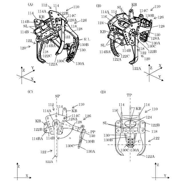 そこで、本発明は、前記問題点を解決するべくなされたもので、消波ブロックを把持して移動させることを、人力で危険なワイヤの玉掛け作業せずに安全でありながら、小型軽量でかつ様々な姿勢の消波ブロックを様々な姿勢で配置可能とする消波ブロック把持装置を提供することを課題とする。
