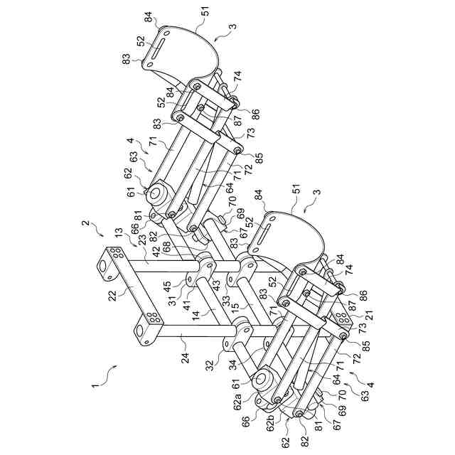 前記第4リンクの一端と前記本体とを相対回転可能に連結する第4連結軸と、
