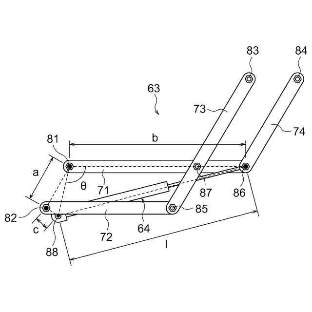 前記第1リンクの他端と前記第4リンクの他端とを相対回転可能に連結する第6連結軸と、