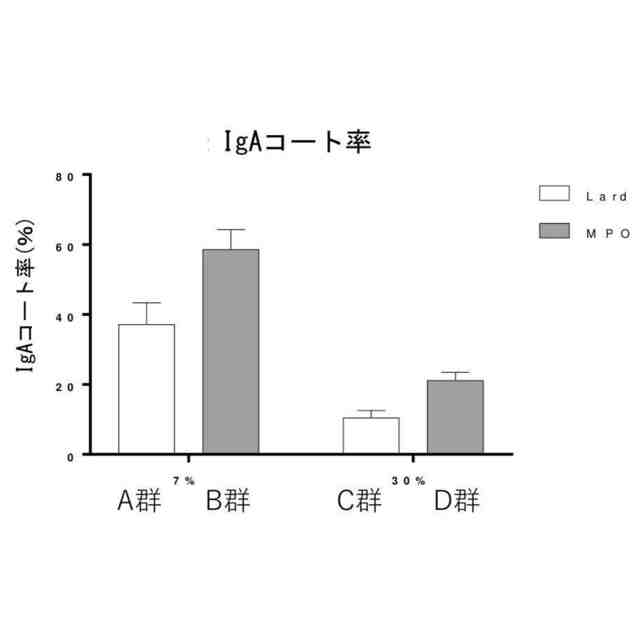 代表的な動物性脂肪であるラードの多量摂取は、末梢組織(腸管や脂肪組織)での炎症、糖代謝異常などの生体異常を引き起こす。これらの生体異常が引き起こされる要因の一つとして、腸内細菌叢やその代謝産物の産生量の変化、腸内に分泌される主要抗体であるIgAと腸内細菌の関係性の変化が挙げられる。