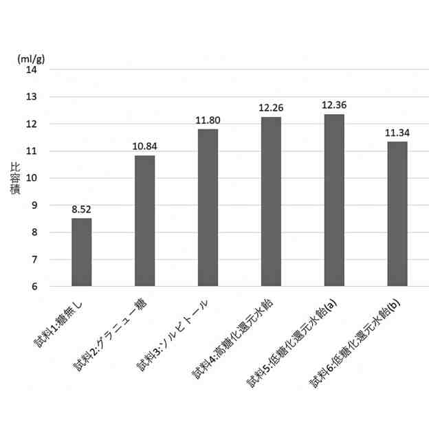 【解決手段】 下記(ア)~(オ)から選択されるいずれか1以上の糖アルコールを有効成分とする、シュー生地の膨化性向上用組成物;(ア)ソルビトール、(イ)糖組成が、単糖が30~50質量%、二糖が20~55質量%および三糖以上が40質量%以下である、還元水飴、(ウ)糖組成が、単糖が30質量%未満かつ五糖以上が50質量%未満の還元水飴、(エ)糖組成が、五糖以上が50質量%以上の還元水飴、(オ)デキストロース当量が10以上100未満の水飴を還元してなる、還元水飴。