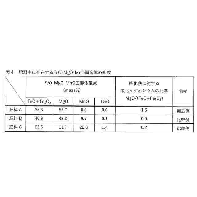 含有量)が1.5超過2.2以下である鉄鋼スラグを原料とし、リン酸、マンガン、ホウ素、鉄、カルシウム、シリカ、マグネシウム、硫黄など多種類の元素を同時に供給可能な肥料が提案されている。