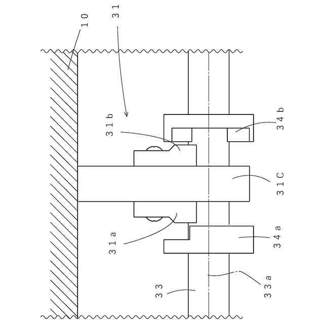また本発明で、前記検出手段は、前記保護板の移動を、揺動軸まわりの保護板の揺動として検出し、