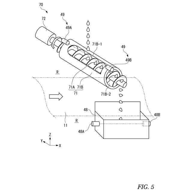 ノズルから発射された糊が空間を移動する間に糊の軌跡がばらついたり、シートの反りによって糊付け領域の位置がばらついたりすること等に起因して、塗布位置がばらつく。特許文献1は、搬送路上に配置され、糊を噴射する噴射装置と一体に変位し、ノズルに付着した糊を下方から受ける糊受けが開示されている。搬送路上に配置され、噴射装置と一体に変位する糊受けに溜まった糊を作業員が回収するには、ケース製造装置を停止させる必要があるため、ケース製造装置の稼働率は低下する。