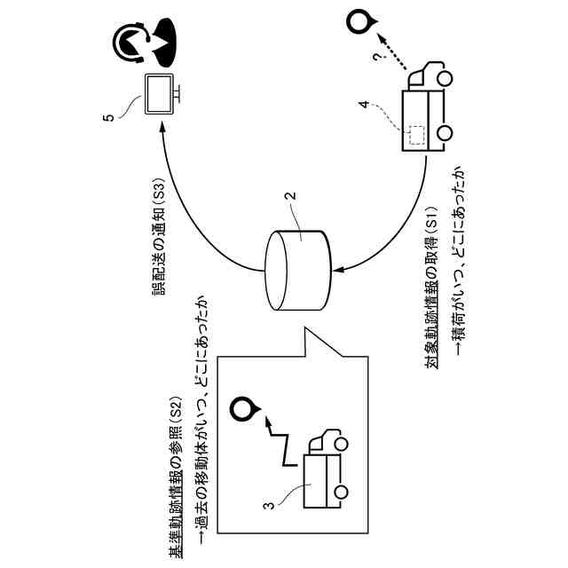 前記対象軌跡情報と、過去に前記出発地点から前記目的地点まで移動した移動体の基準軌跡に関する基準軌跡情報とに基づいて、前記積荷が前記目的地点に搬送されているか否かを判定する判定部であって、前記基準軌跡は、前記移動体の位置データ、及び、前記移動体の移動時間に基づいて特定される、判定部と、