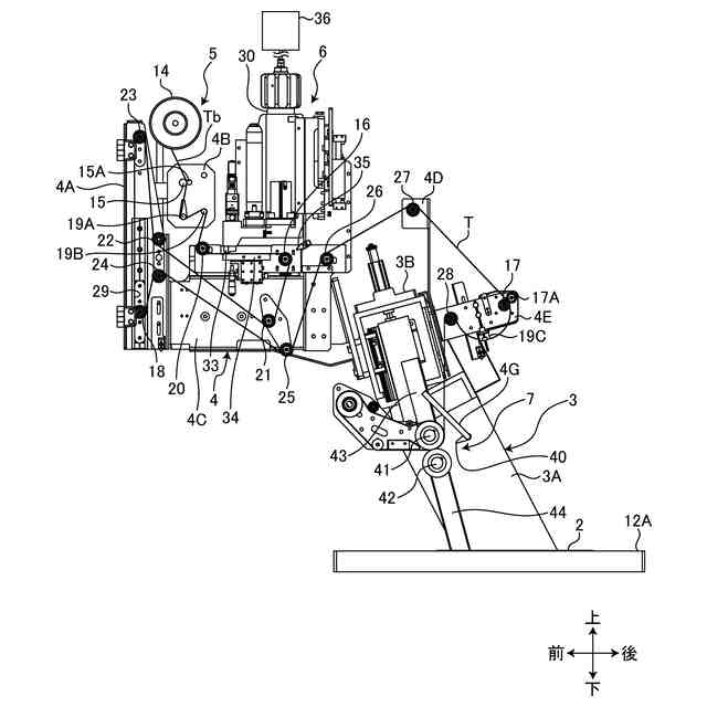 縫製物の製造装置に係る技術分野において、特許文献1に開示されているような、接着テープを加熱してシートに接着させるボンディング装置が知られている。ボンディング装置は、熱風を噴射するノズルと、熱風で加熱された接着テープとシートとを接合する一対のローラとを備える。