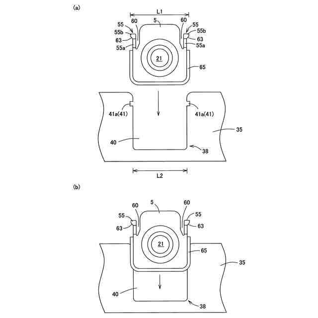 前記軸部は、長手方向の片側に位置する第一軸部と、他方側に位置する第二軸部を含み、