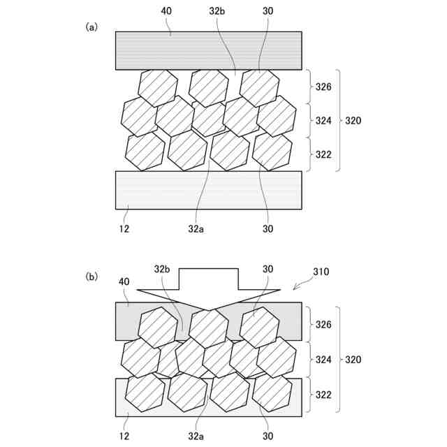 本技術の第2の態様では、上記の第1の態様において、前記電極成分は、前記集電体の表面上に配置される第1層と、前記第1層上に配置される第2層と、を備えていてもよい。前記電極成分は、複数の粒子を含んでいてもよい。前記第1層中の前記粒子の体積分率は、前記第2層中の前記粒子の体積分率より小さくてもよい。