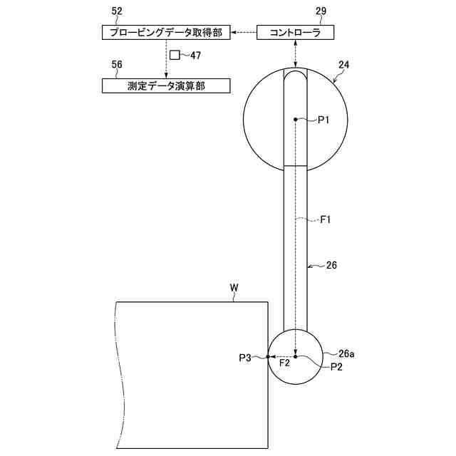 従来、プローブの位置及び姿勢を変位させる駆動部を有し、このプローブをワーク(被測定物)に形成されている複数の測定要素(例えば直線、円穴、平面、球等)にそれぞれ接触(プロービング)させることにより、測定要素の寸法及び形状等の様々な測定を実行する三次元座標測定機(形状測定機)が知られている。この三次元座標測定機は、予め定められた測定プランに従ってプローブでワークの測定要素の1以上の測定項目(半径、直径、真円度等)を測定して得られたプロービング点の座標値と、プローブの校正データとに基づいて、測定項目に対応したワークの測定データを取得する(特許文献1参照)。