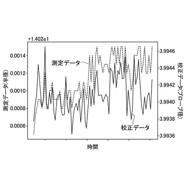 特許文献1に記載の三次元座標測定機では、プローブの校正作業及び校正データの取得を定期的に実行する。この際に、従来ではユーザが校正データ(XYZ方向のオフセット量、プローブ径など)の閾値等を設定して、新たに取得した校正データとその閾値とを比較することで、この校正データの良否及び傾向等を管理していた。しかしながら、この場合には、閾値の設定方法が定められていないので、ユーザはどのような閾値を設定すればよいのかが分からない。また、ユーザにとっては校正データの閾値の設定自体が煩雑である。