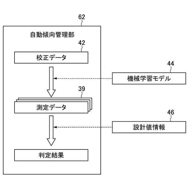 【解決手段】プローブ26の新たな校正データ42を取得する校正データ取得ステップ(校正データ取得部54)と、校正データ取得ステップで取得した校正データ42に基づいて、校正データ42を入力として測定データ39を出力とする機械学習モデル44を用いて、測定データ39を予測する予測ステップ(自動傾向管理部62)と、予測ステップで予測した測定データ39と、ワークWの設計値情報46とに基づいて、校正データ取得ステップで取得した校正データ42の良否を判定する判定ステップ(自動傾向管理部62)と、を有する。