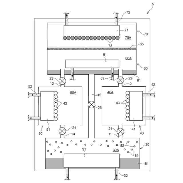 請求項3に係る吸着式ヒートポンプは、請求項1又は請求項2に記載の吸着式ヒートポンプにおいて、前記凝縮器と前記第2吸着器とを区画し、前記第2吸着質を通過させ、前記第1吸着質を通過させない隔膜を備えている。