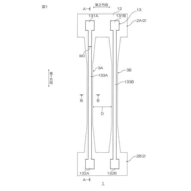 第1方向に延び、互いに間隔を隔てて配置される複数の配線部と、