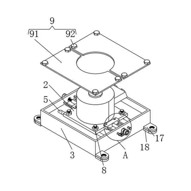 前記保護組立体(9)は保護カバー(91)を含み、前記保護カバー(91)は検査及びキャリブレーション用治具ボックス(3)の頂部に位置し、前記保護カバー(91)の頂部にはネジ(92)が螺接され、前記ネジ(92)は、検査及びキャリブレーション用治具ボックス(3)の頂部に螺接されている