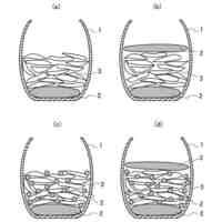 第2の実施例で用いる網籠と水槽の模式的断面図