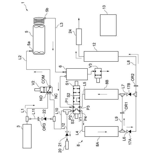 例えば特許文献1では、1つの吸着床に対してコンプレッサを用いて圧力を減圧し、再生を行うことが記載されている。