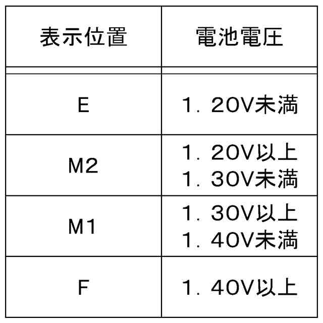 第1実施形態の電池残量の表示位置と電池電圧との関係を示す図である。