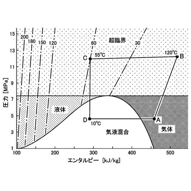 冷媒の冷凍サイクルでは、CO