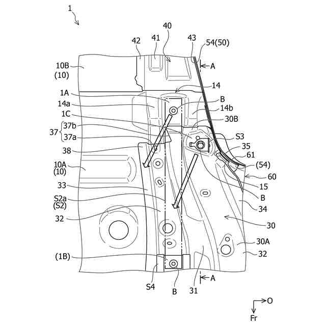 車体下部におけるシートの近傍には、シートベルトを支持するシートベルトアンカが固定されるシートベルトアンカ固定部と、スライドレール後部などのシート後部が固定されるシート後側固定部とが、設けられている。シートベルトアンカ固定部やシート後側固定部のそれぞれには、各固定部を前方且つ斜め上方に引っ張る荷重が作用し得る。そのため、各固定部を補強すべく、リンフォース(リテーナとも呼ばれ得る)などの補強部材が各固定部にスポット溶接によって接合されることが多い。