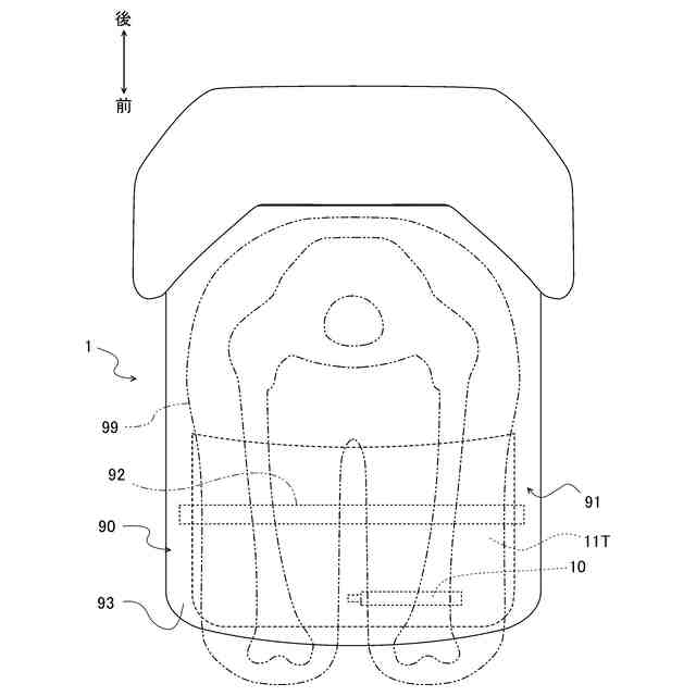 なお本明細書でいう前側、前方等とは、座席の座部に着座した乗員の身体を基準とした前後方向における前側、前方等を意味する。同様に、後側、後方等についても座席の座部に着座した乗員の身体を基準とした前後方向における後側、後方等を意味する。また本明細書において、後述する幅方向とは、水平かつ当該前後方向に直交する方向を意味する。さらに、上、下、とは鉛直方向の上、鉛直方向の下を意味する。