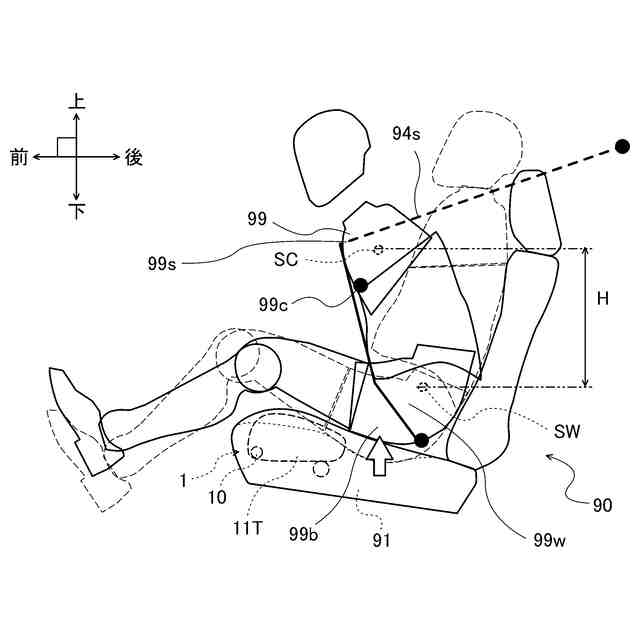 本発明の発明者は、上記した、衝撃発生時に乗員の胸部が強く押される問題を抑制すべく鋭意研究を重ねた。そしてその結果、衝撃発生時に乗員の胸部が強く押される問題が、衝撃発生時における乗員の姿勢と関係していることを見いだした。