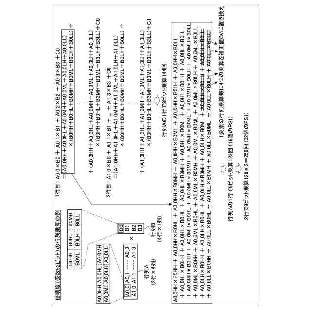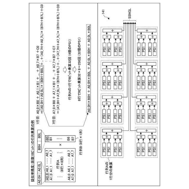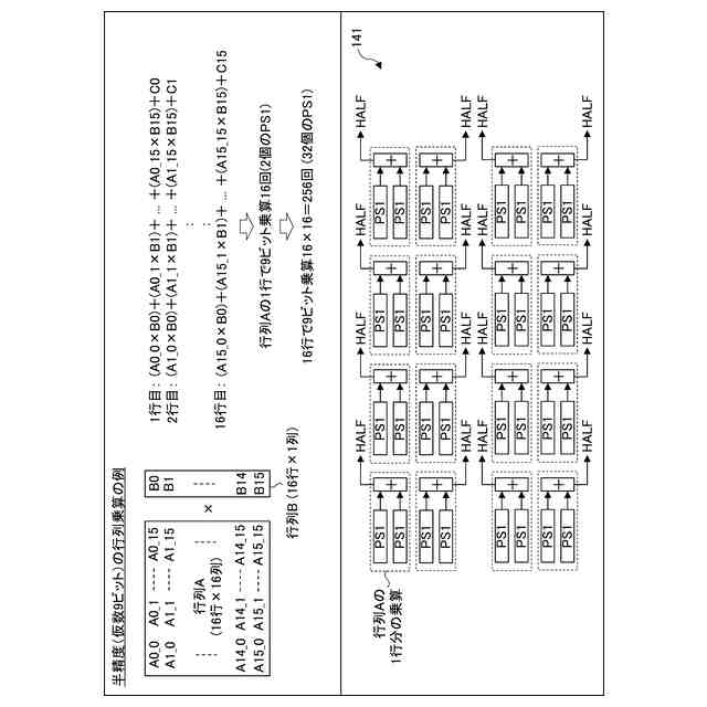 プロセッサチップ等のASICに実装可能な行列演算回路の数及び規模には上限がある。例えば、複数の精度の浮動小数点数データの行列演算がアプリケーションで必要な場合、精度毎の行列演算回路をプロセッサチップに搭載することが好ましい。しかしながら、回路規模の制約から、必要な精度の複数の行列演算回路をプロセッサチップに搭載することが困難な場合がある。また、回路規模が大きくなることで消費電力は大きくなる場合がある。