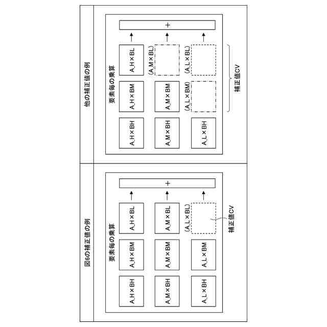 単精度データの行列乗算を実行する場合の補正値への置き換えの例を示す図である。