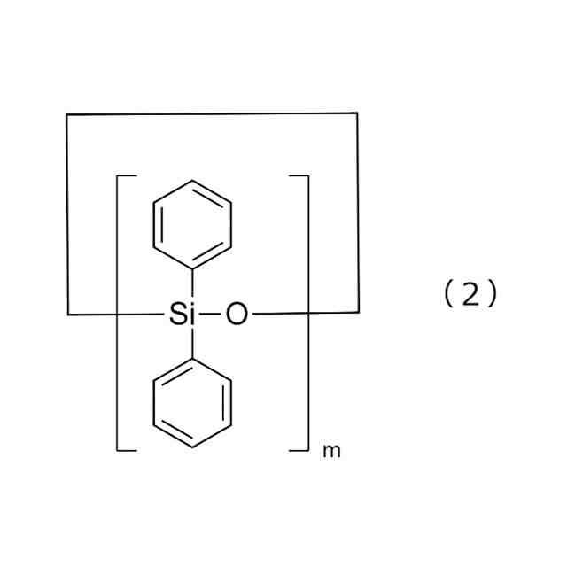 前記一般式(2)で示される環状シロキサン化合物が、オクタフェニルシクロテトラシロキサン、デカフェニルシクロペンタシロキサン、ドデカフェニルシクロヘキサシロキサン、ヘキサデカフェニルシクロオクタシロキサンからなる群の1種である請求項1に記載の樹脂組成物。