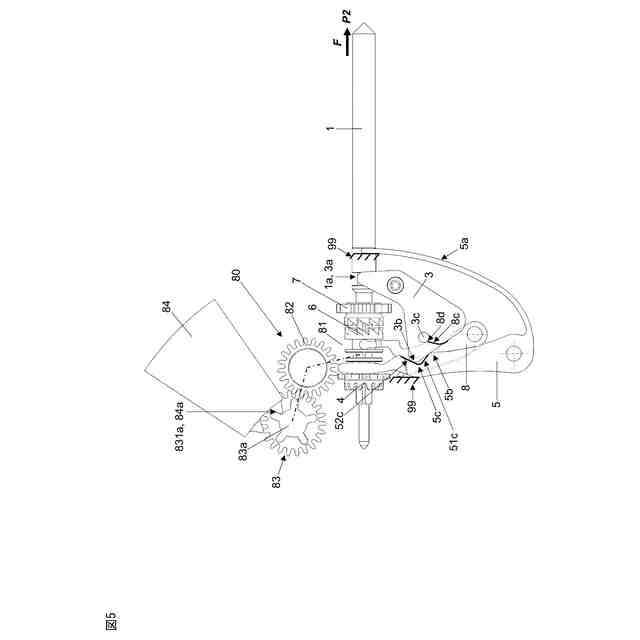 前記引き抜き片(3)の前記第一形状(3b)と前記第一レバー(5)は、同一の第一平面(PA)内に配置され、前記引き抜き片(3)の前記第二形状(3c)と前記第二レバー(8)は、前記第一平面に平行な第二平面(PB)内に配置される、