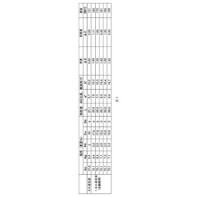 は、銀、パラジウム及び銅を含有する18カラット合金である。