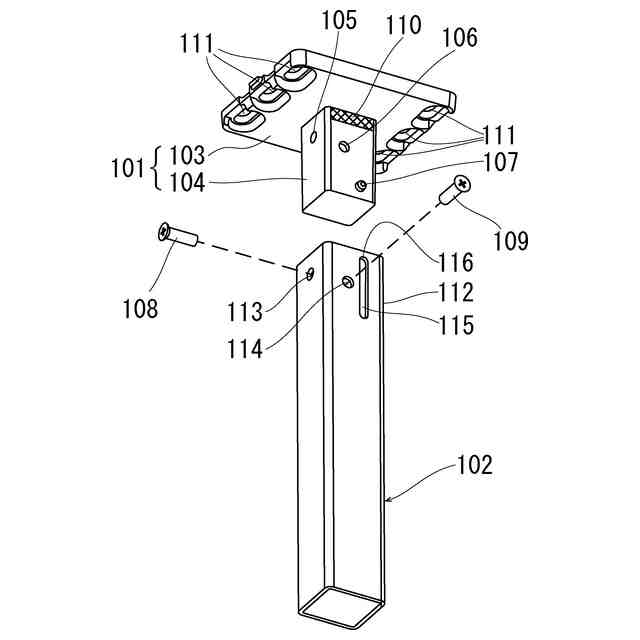 第二実施例の支持具と吊下具の連結部分を示す分解斜視図。