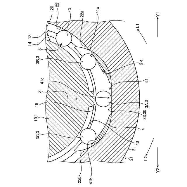 ところで、コマの径方向の厚みが大きくなると、ナットの凹面の深さが大きくなり、ナットが大型化する。このため、径方向に小型化されたコマの開発が望まれている。