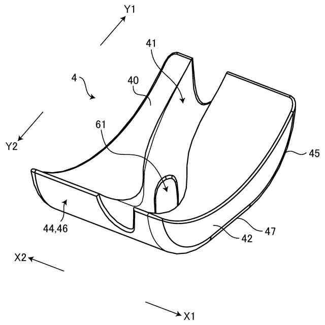前記S字溝面は、前記S字溝面の長さ方向の両端から前記S字溝面の長さ方向の中央部に近づくにつれて、前記コマ挿入方向への窪み量が次第に大きくなり、