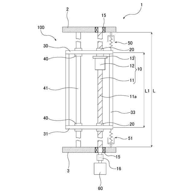 図1は、第1状態の共振防止装置を示した送りねじ装置の全体図である。
