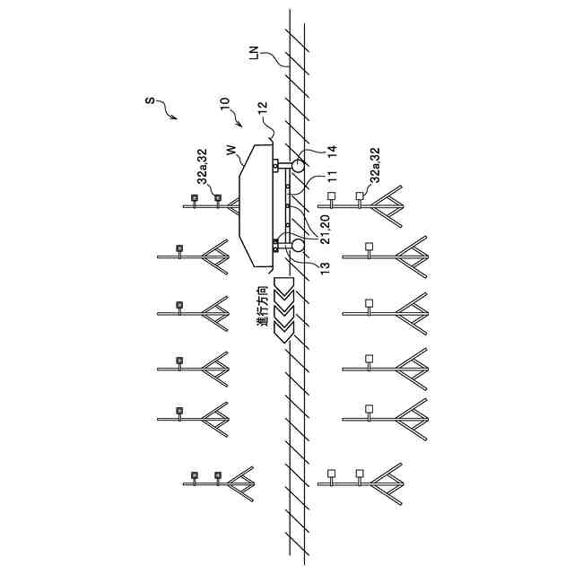 本実施形態の搬送装置Sは、複数の搬送台車10のそれぞれに、加工対象物W(たとえば車体を構成するホワイトボディ)を乗せた状態で、搬送経路LNに沿って移動させるものである。