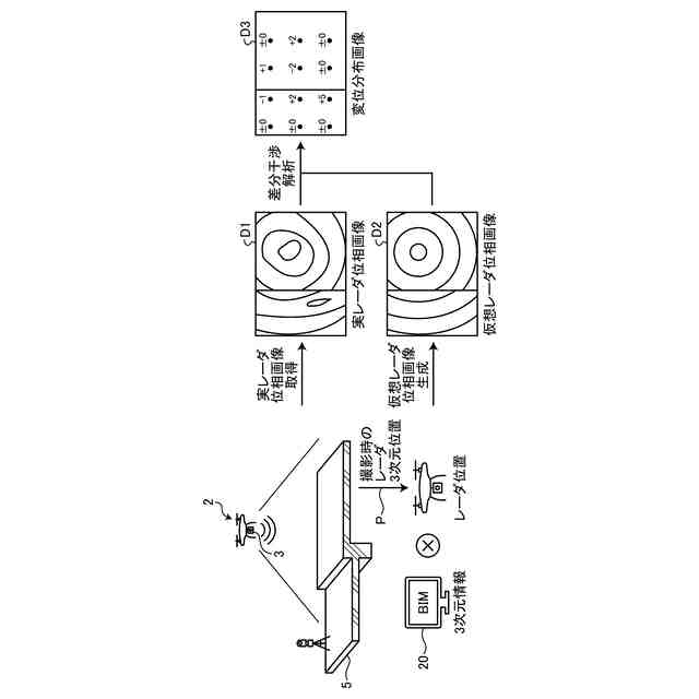【解決手段】実レーダ装置3は、設計した仮想対象物の3次元情報である3次元情報20をもとに出力した実対象物5の実レーダ位相画像D1を生成し、仮想レーダ位相画像生成部は、実レーダ位相画像D1を生成した際の実レーダ装置3の3次元位置Pに対応する3次元情報20上の3次元位置から3次元情報20の3次元空間内において仮想対象物の仮想レーダ位相画像D2を生成する。その後、誤差分布算出部は、実レーダ位相画像D1と仮想レーダ位相画像D2とに対する差分干渉解析処理を行って、設計上の仮想対象物と出力した実対象物5との誤差分布を算出する。