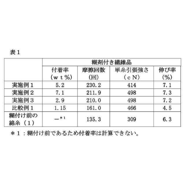 [6] 前記糊剤付き繊維品に対する前記糊剤の付着率が0.1~10重量%である、[1]~[5]のいずれかに記載の糊剤付き繊維品。