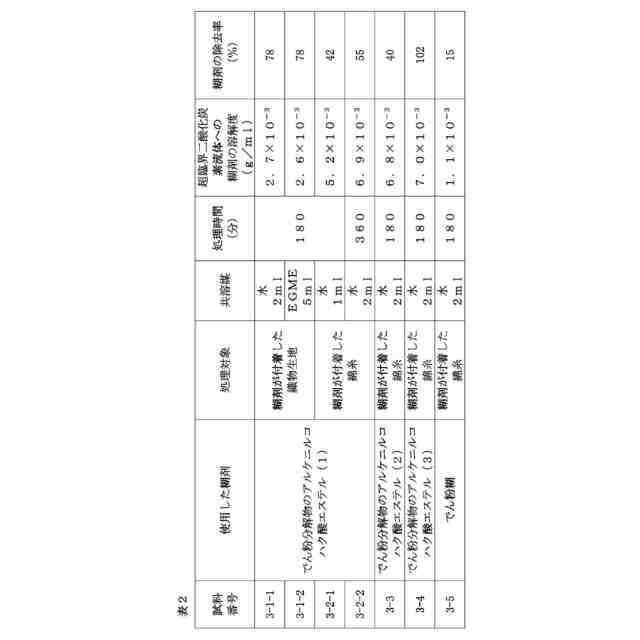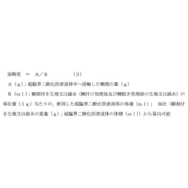 本発明者らは、繊維品の糊抜き工程において、従来使用していた水の代わりの溶媒として超臨界二酸化炭素を用い、廃水問題を解決する環境にやさしい繊維品の製造工程の実現ができると考えた。糊抜き工程において処理対象となる従来の糊剤としては、でん粉糊を含む糊剤が従来から使用されている。しかし、本発明者らが鋭意検討したところ、でん粉糊を含む糊剤は水を使用した糊抜きを前提としているため、超臨界二酸化炭素を用いた糊抜きには不適であることがわかった。