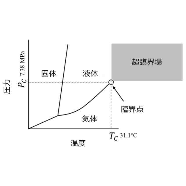 図1は、二酸化炭素の温度-圧力の状態図である。
