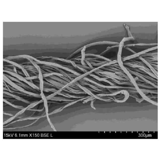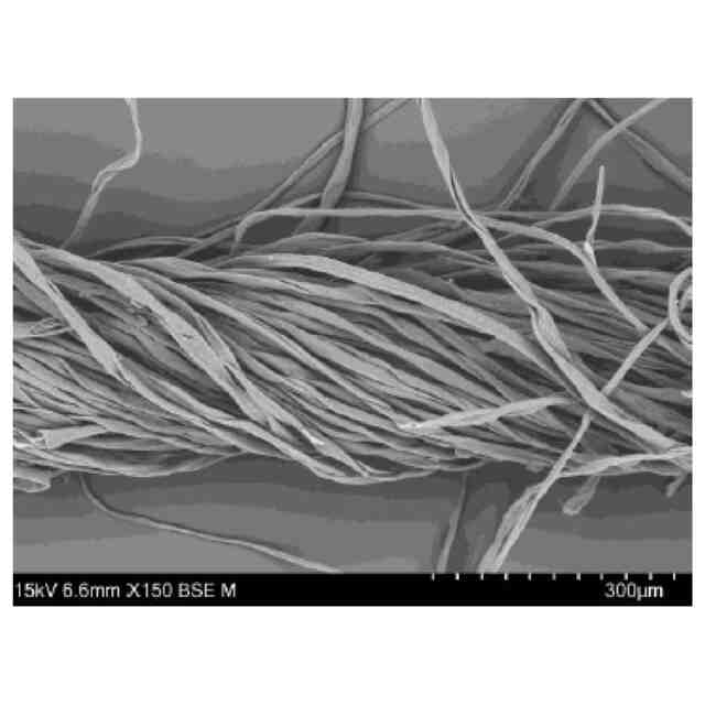 図2は、糊剤が付着していない綿糸のSEM画像である。