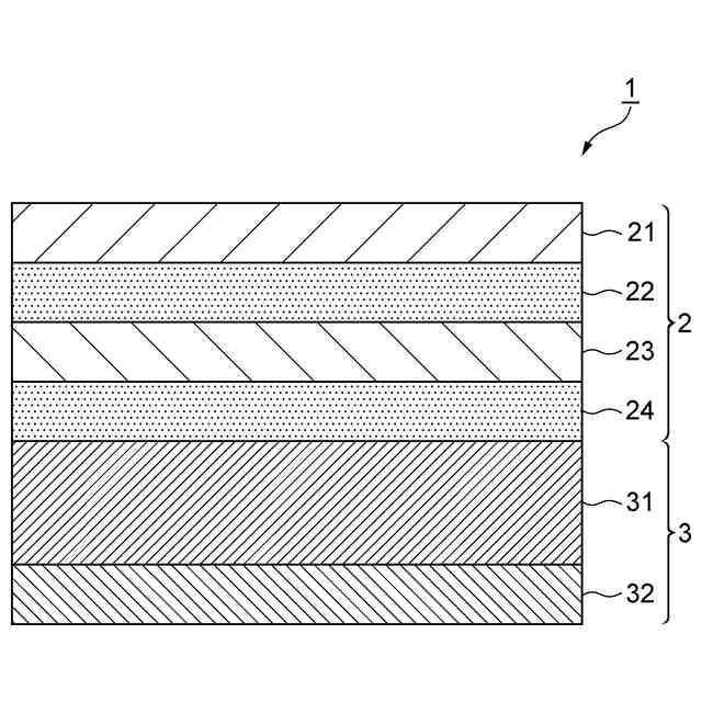 前記第1の積層体の前記第2の接着層に接着された第2の積層体と、