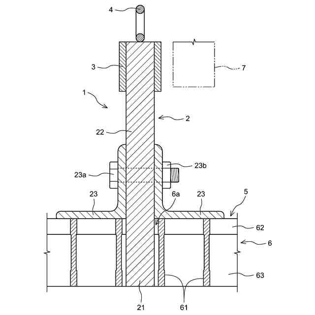 グレーチングに特有の定着装置としては、グレーチングの上下にボルトとナット等の対になる部品を組み合わせる形態がある(特許文献4、5参照)。