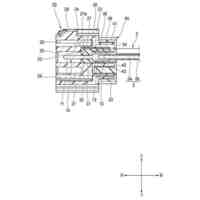 上記目的を達成するために、本発明に係る端子は、中心軸線周りに環状に形成され内側に挿入された相手方端子と電気的に接続される端子接続部を備え、前記端子接続部は、前記中心軸線周りに環状に形成された基部と、前記基部から前記中心軸線に沿って突出して形成されかつ前記中心軸線周りに間隔をあけて並んで配置され、前記相手方端子と接触する複数の弾性接触片とを含み、前記複数の弾性接触片は、前記中心軸線に沿う軸線方向から視て、前記基部に接続される基端側の位置と先端側の位置がずれるように前記中心軸線周りに捻じられて配置されていることを特徴とする。