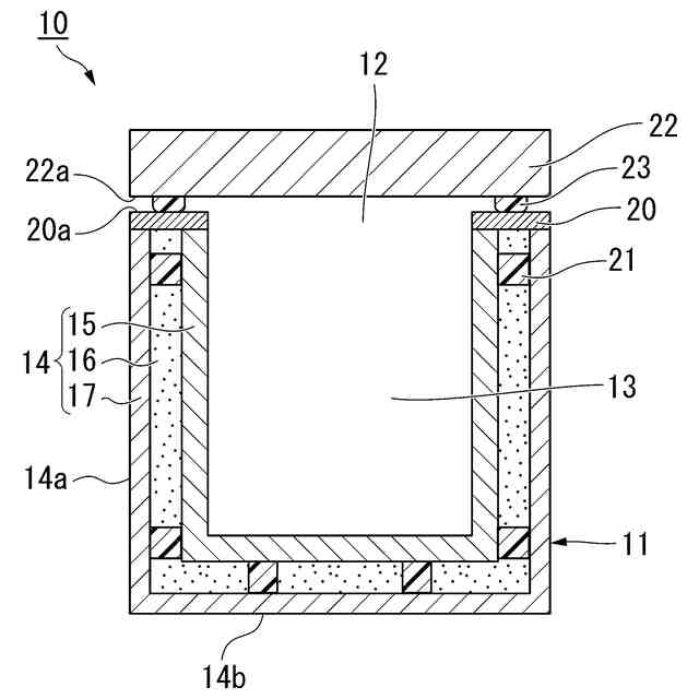 [5] 前記熱処理装置は、前記処理槽に向かい合って前記開口部を塞ぐ蓋と、前記蓋と前記端面材との間に配置されるパッキンとを備え、前記パッキンが前記端面材に接触する位置は、前記パッキンが前記断熱材に向かい合う位置または前記断熱材よりも外側に向かい合う位置であることを特徴とする、[1]~[4]のいずれか一に記載の熱処理装置。
