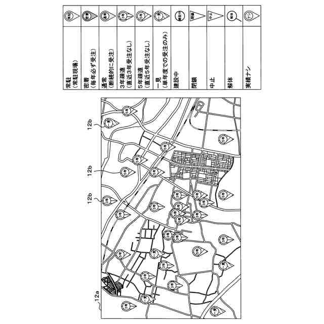 しかしながら、特許文献1に係る発明は、地図上に建物の受注頻度の種類を示す実績アイコンを出力することができないという問題がある。