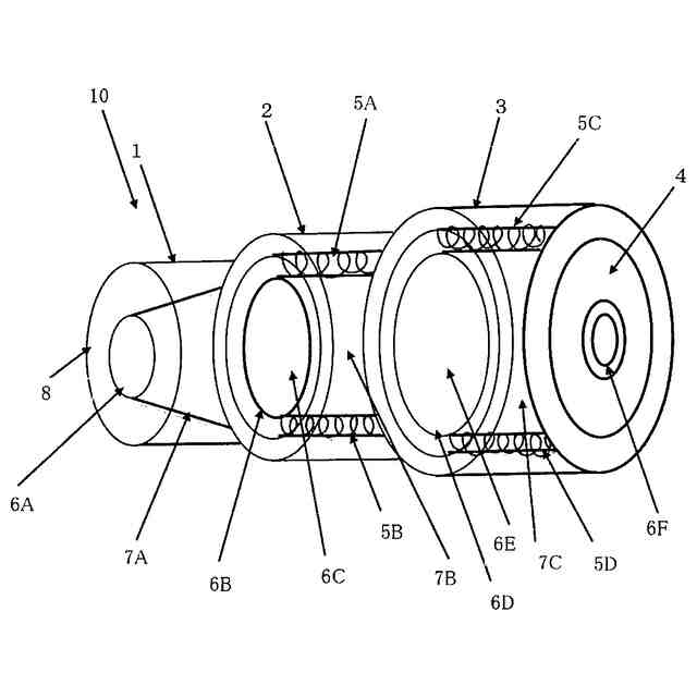 前記第1の筒体は前記第2の筒体よりも一回り小さく、前記第2の筒体は前記第3の筒体よりも一回り小さく、