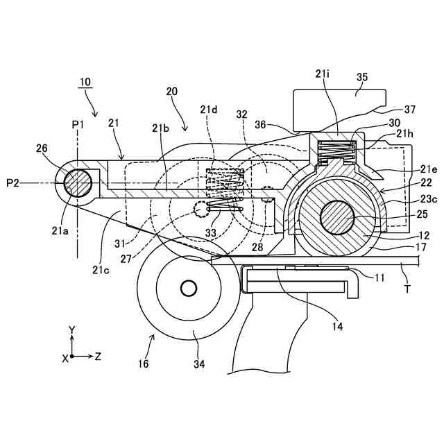 【解決手段】被印刷媒体(T)に印刷を行う印刷部(11)と、被印刷媒体を印刷部と共に挟持しながら搬送するプラテンローラ(12)を含むプラテンローラ構成部(20)と、を備え、プラテンローラ構成部は、第1の回転軸(26)を中心として回転するベース回転部(21)と、プラテンローラと共にベース回転部と連動して回転し、さらに第2の回転軸(27)を中心に回転することでプラテンローラの位置を調整するプラテンローラ調整部(22)と、を含む。