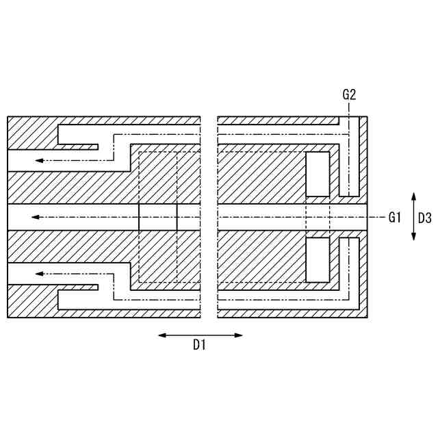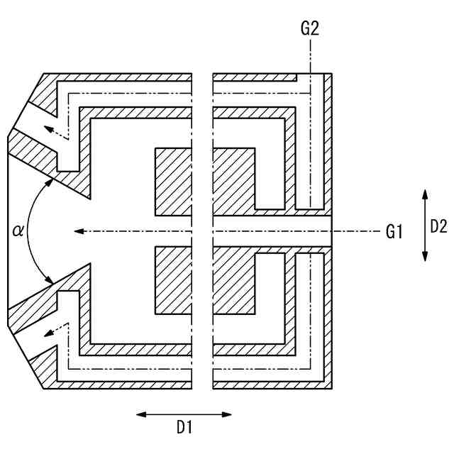 前記第1流体噴出口の内面は、前記振動方向において前記第1流体噴出口の幅を上流側から下流側に向けて拡大させる末広がり状部分を有し、